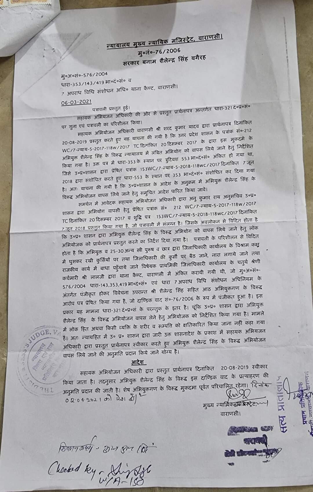 एसटीएफ में तैनात पूर्व सीओ शैलेंद्र सिंह के खिलाफ साल 2004 में मुकदमा दर्ज हुआ था। राजनीति दबाव के चलते पूर्व की सपा सरकार ने शैलेंद्र सिंह से न सिर्फ इस्तीफा ले लिया था बल्कि उनके खिलाफ मुकदमा भी दर्ज कराया था। राजनीति से प्रेरित ऐसे मुकदमों को वापस लेने का फैसला यूपी सरकार ने 20 दिसंबर, 2017 को ही कर लिया था। इसी क्रम में सीजीएम कोर्ट ने पूर्व सीओ शैलेंद्र सिंह पर हुआ मुकदमा वापस ले लिया। इस आदेश की प्रति उनको मंगलवार को प्राप्त हो गई।