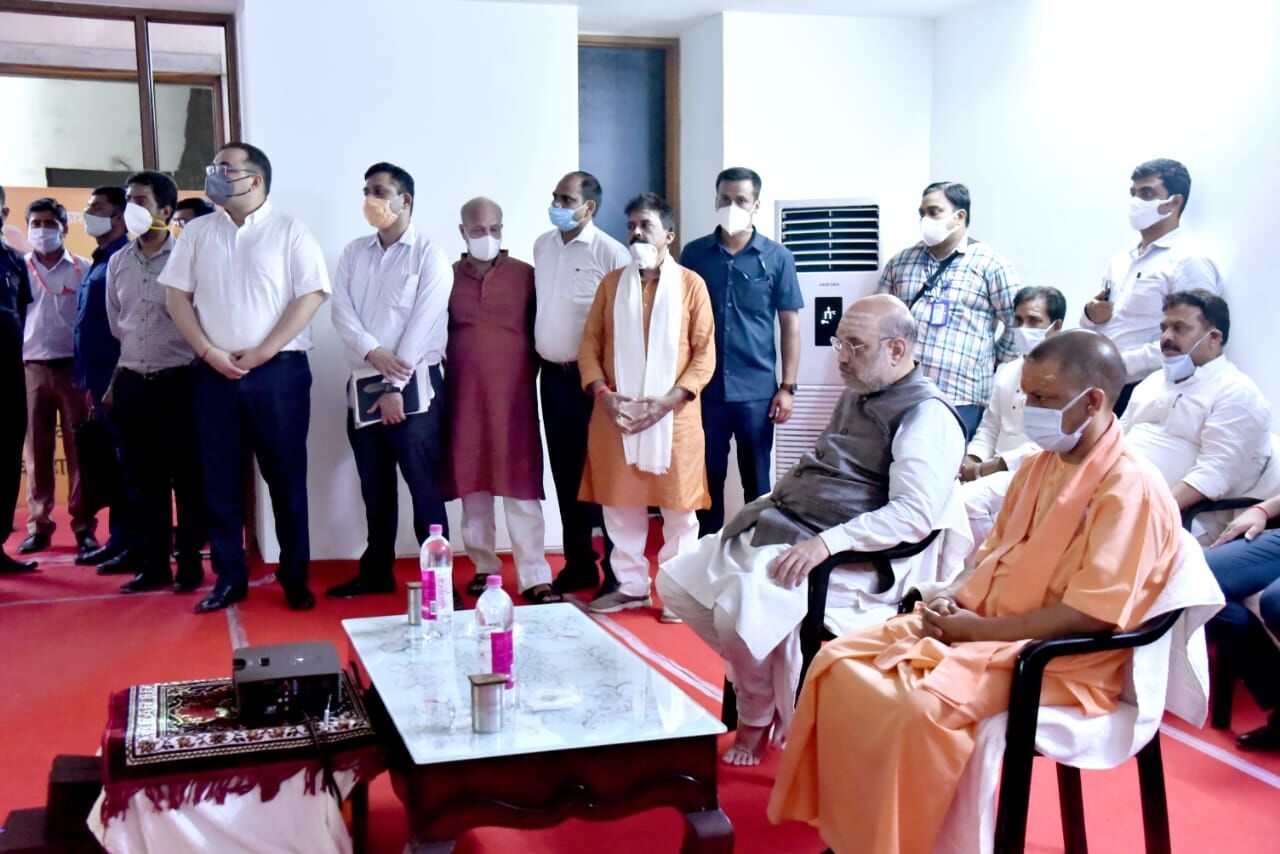 गृहमंत्री अमित शाह ने किये बाबा विश्वनाथ के दर्शन, मुख्यमंत्री ने अंग वस्त्र और मोमेंटो देकर किया सम्मानित