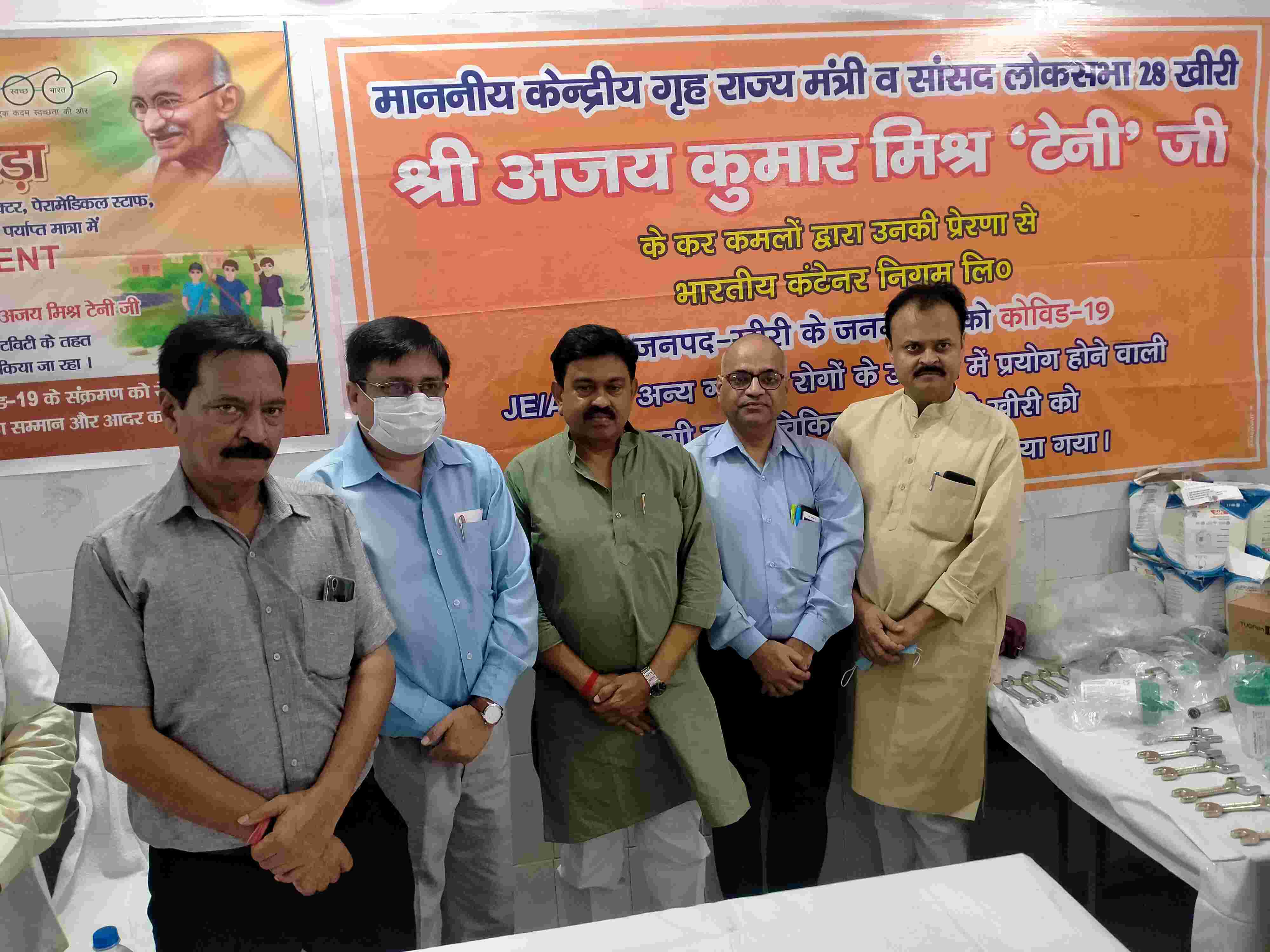 अपने निर्धारित कार्यक्रम के अनुसार केंद्रीय गृह राज्य मंत्री अजय मिश्र 'टेनी' सांसद प्रतिनिधि अरविंद सिंह 'संजय' और प्रतिनिधि अमरीश सिंह के साथ जिला अस्पताल पहुंचे। जहां उन्होंने कंटेनर निगम लिमिटेड कंपनी द्वारा स्वास्थ्य विभाग को भेंट किए गए 21 बाल विभाग संबंधित उपकरण को स्वास्थ्य विभाग के सुपुर्द किया। इन उपकरणों में वीआई सेट (500), लैरीजियो स्कोप (25), चाइल्ड ऑक्सीजन मास्क (400), नेबुलाइजर मास्क (42), इंडस्ट्रियल ट्यूब (135), लैरिजो स्कोप (10), अंबूबैग (40), नेजल कैनुला (200), कफ चाइल्ड बीपी मशीन (30), इन्फ्यूजन पंप (4), फ्लो मीटर (26) ऑक्सीजन सिलेंडर की चाबी (100), चाइल्ड बाईपैप मास्क (40), वेंटिलेटर कनेक्टर मास्क (20), वेंटीलेटर सर्किट (20) कैनुला नंबर 24,26 (500), सक्शन कैथेटर (30), कैथेटर (200), नॉनरी ब्रीदर ऑक्सीजन मास्क (200), एयरवे (50), रॉयल्स ट्यूब (50), शामिल हैं।