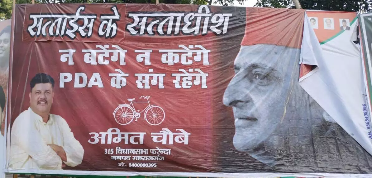 दरअसल, उप चुनाव को लेकर सपा और बीजेपी में आज कल होर्डिंग वॉर चल रही है। बीते दिनों 'सत्ताईस के सत्ताधीश' समेत 'सत्ताईस के खेवनहार' जैसे पोस्टर लगे थे अब 'न बंटेंगे न कटेंगे' पोस्टर की बारी है। लखनऊ पश्चिम विधानसभा से समाजवादी पार्टी के सचिव रंजीत सिंह द्वारा लगवाए गए पोस्टर सोशल मीडिया पर वायरल हुए थे। इसमें लिखा गया था कि, "न बंटेंगे न कटेंगे 2027 में नफरत वाले हटेंगे।"