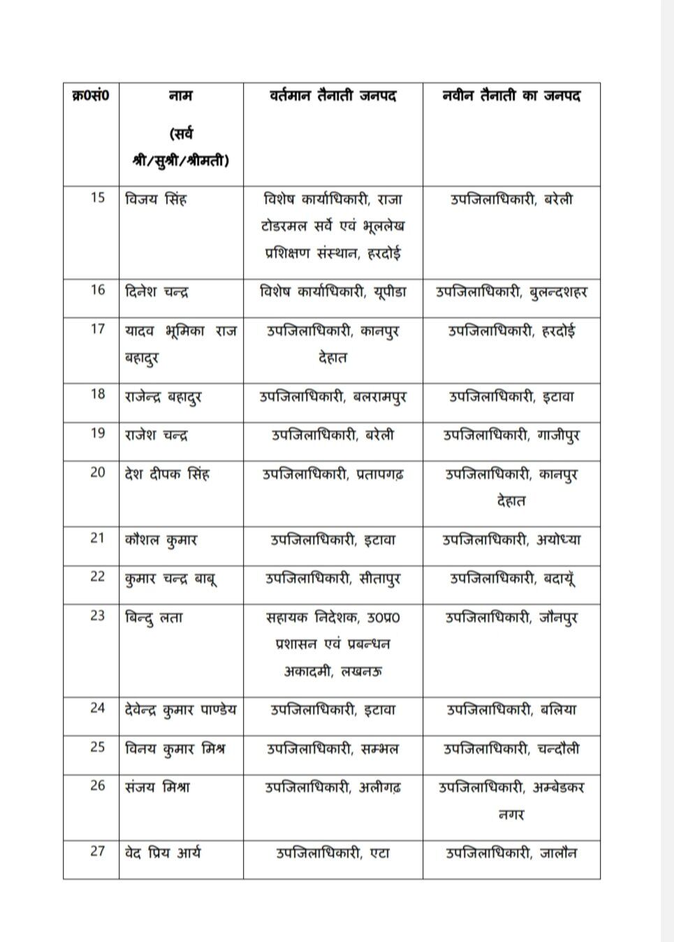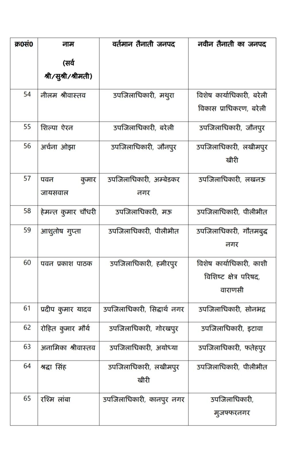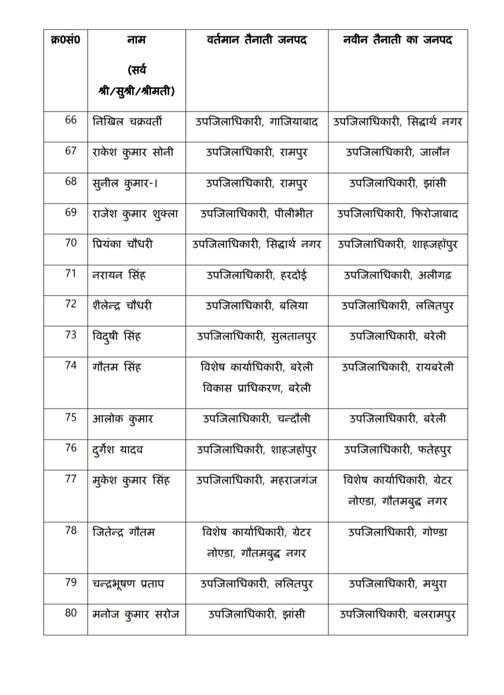 प्रदेश के वह PCS अफसर जो 6600 ग्रेड पे पा चुके है जिन्हें सिटी मैजिस्ट्रेट - ADM J बनाया जा सकता है उनका भी SDM लिस्ट में तबादला हो गया है।