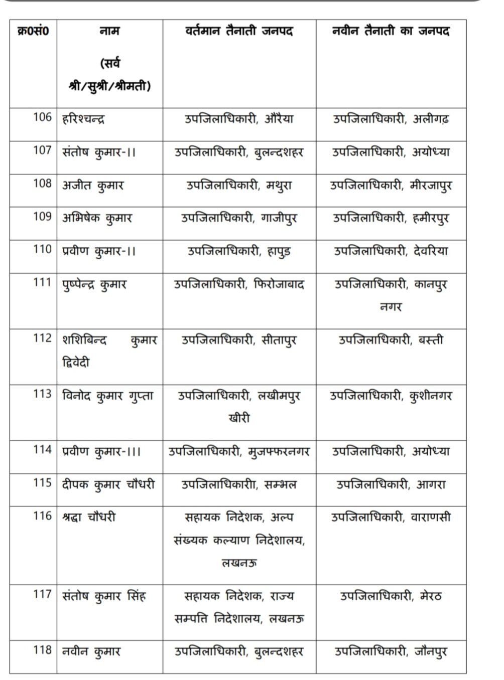 UP SDM Transfer: 127 उप जिलाधिकारी का ट्रांसफर
