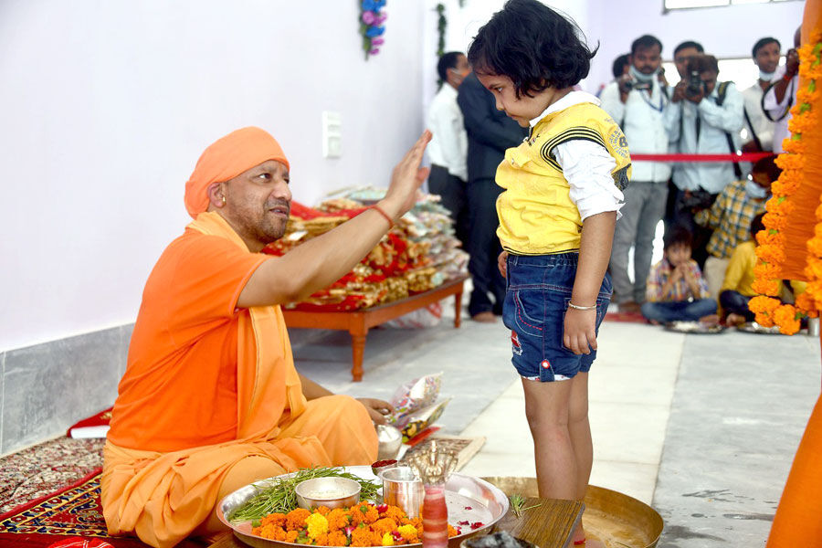 मुख्यमंत्री योगी आदित्यनाथ ने महानवमी पर कन्या पूजन कर लिया आशीर्वाद, देखें फोटो