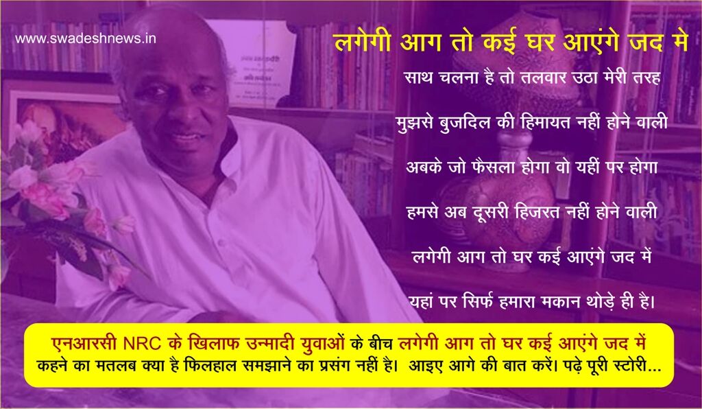 एनआरसी के खिलाफ उन्मादी युवाओं के बीच लगेगी आग तो घर कई आएंगे जद में कहने का मतलब क्या है फिलहाल समझाने का प्रसंग नहीं है। आइए आगे की बात करें।