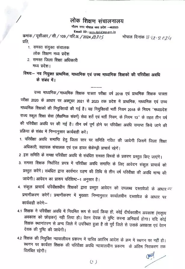 इसके अलावा अगर किसी शिक्षक का दूसरे जिले में स्थानांतरण हुआ है तो पूर्व जिले से उसके अवकाश और वेतन देयक से पुष्टि की जाएगी। वहीं नव नियुक्त शिक्षक की परिवीक्षा अवधि की गोपनीय चरित्रावली भी संतोषजनक होना अनिवार्य है।