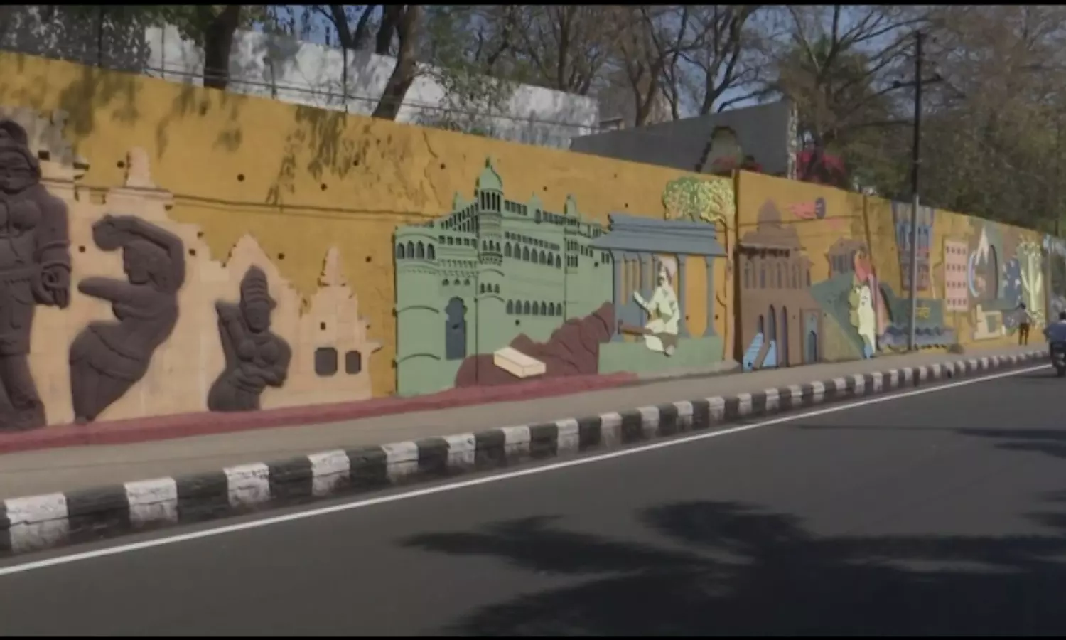 - रंग-बिरंगी वॉल पेंटिंग्स के जरिए मध्य प्रदेश की सांस्कृतिक झलक प्रस्तुत की गई है।