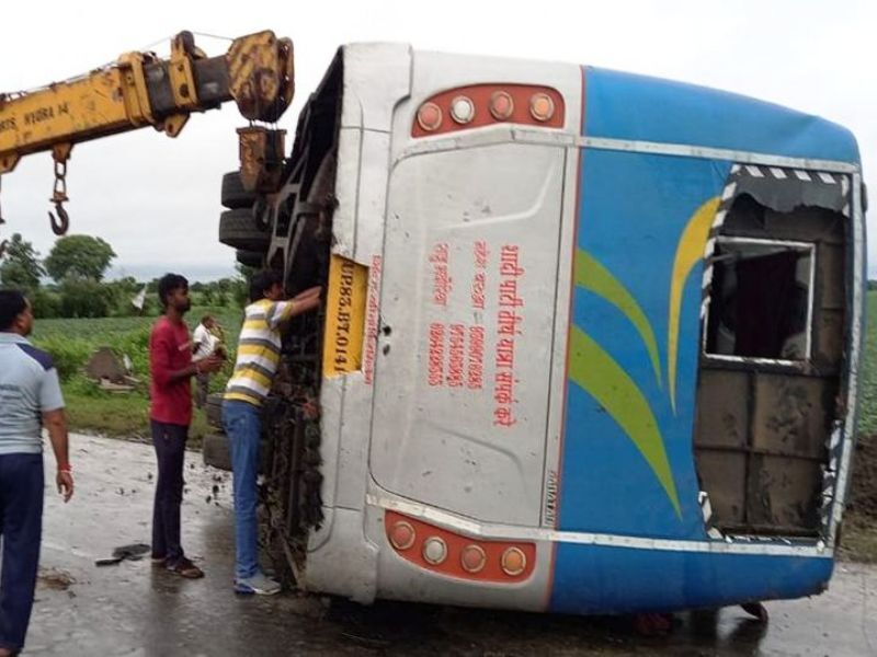 इटावा से अहमदाबाद जा रही बस उज्जैन में पलटी, दो की मौत, 30 घायल