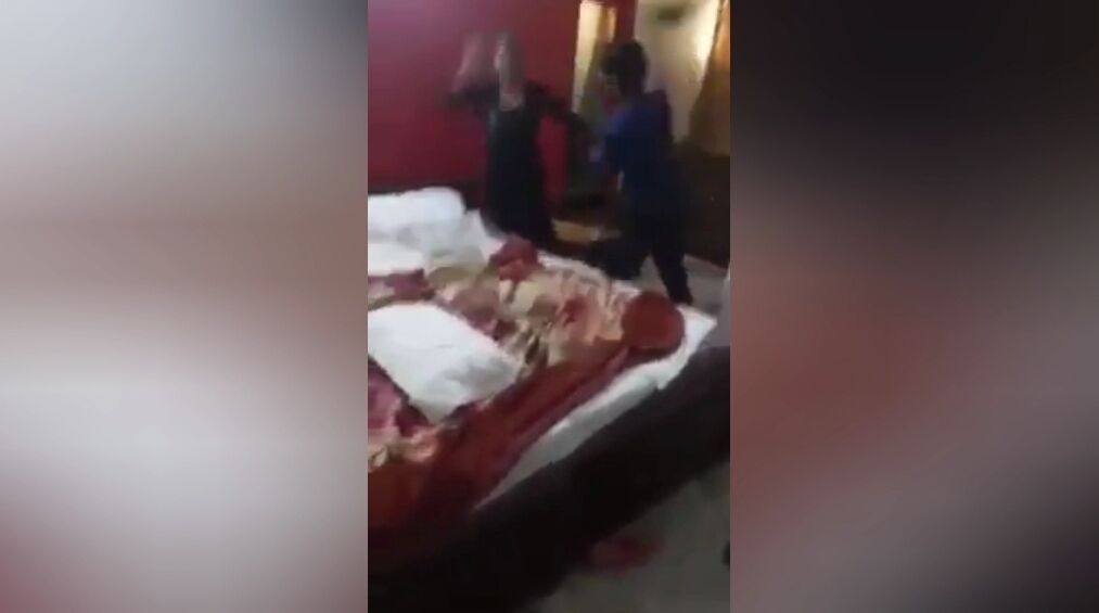 |आगरा। शहर के ताजगंज थाना क्षेत्र में एक पति ने अपनी पत्नी को प्रेमी के संग होटल के एक कमरे रंगरेलियां मानते हुए रंगेहाथ पकड़ लिया। पत्नी को अन्य युवक के साथ रंगरेलियां मानते देख गुस्सायें पति ने पत्नी की चप्पल से पिटाई कर दी। पति द्वारा पत्नी की पिटाई का लाइव वीडियो सोशल मीडिया पर वायरल हो रहा है।