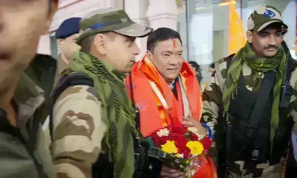 अयोध्या। अरूणांचल प्रदेश के मुख्यमंत्री पेमा खाण्डू अपने कैबिनेट के सहयोगी मंत्रियों विधायकों व प्रमुख अफसरों के साथ चार्टेड प्लेन से अयोध्या पहुँचे। महर्षि वाल्मीकि एअरपोर्ट पर उत्तर प्रदेश सरकार के मंत्री सूर्य प्रताप शाही ने अरूणांचल के मुख्यमंत्री पेमा खाण्डू का स्वागत किया।