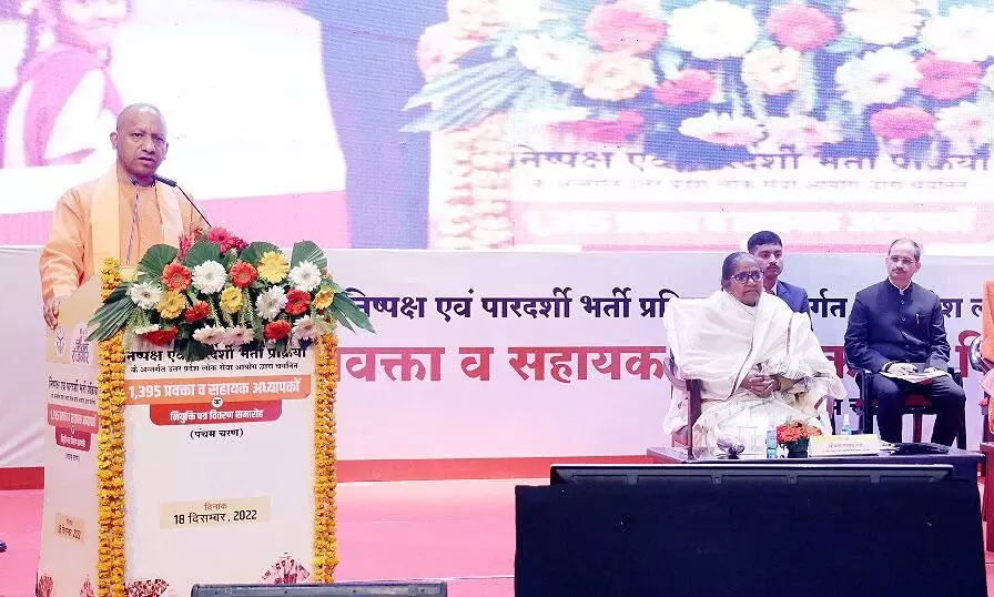 |लखनऊ। मुख्यमंत्री योगी आदित्यनाथ ने रविवार को यहां लोक भवन में राजकीय माध्यमिक विद्यालयों में नवनियुक्त एक हजार 395 सहायक अध्यापकों एवं प्रवक्ताओं को नियुक्ति पत्र वितरित किया। उन्होंने कहा कि मुझे खुशी है कि प्रदेश का युवा निष्पक्ष चयन प्रक्रिया के तहत नियुक्त होकर सेवा के लिए तत्पर दिखाई दे रहा है। यह सभी शिक्षक लोक सेवा आयोग की ओर से चयनित हुए हैं।