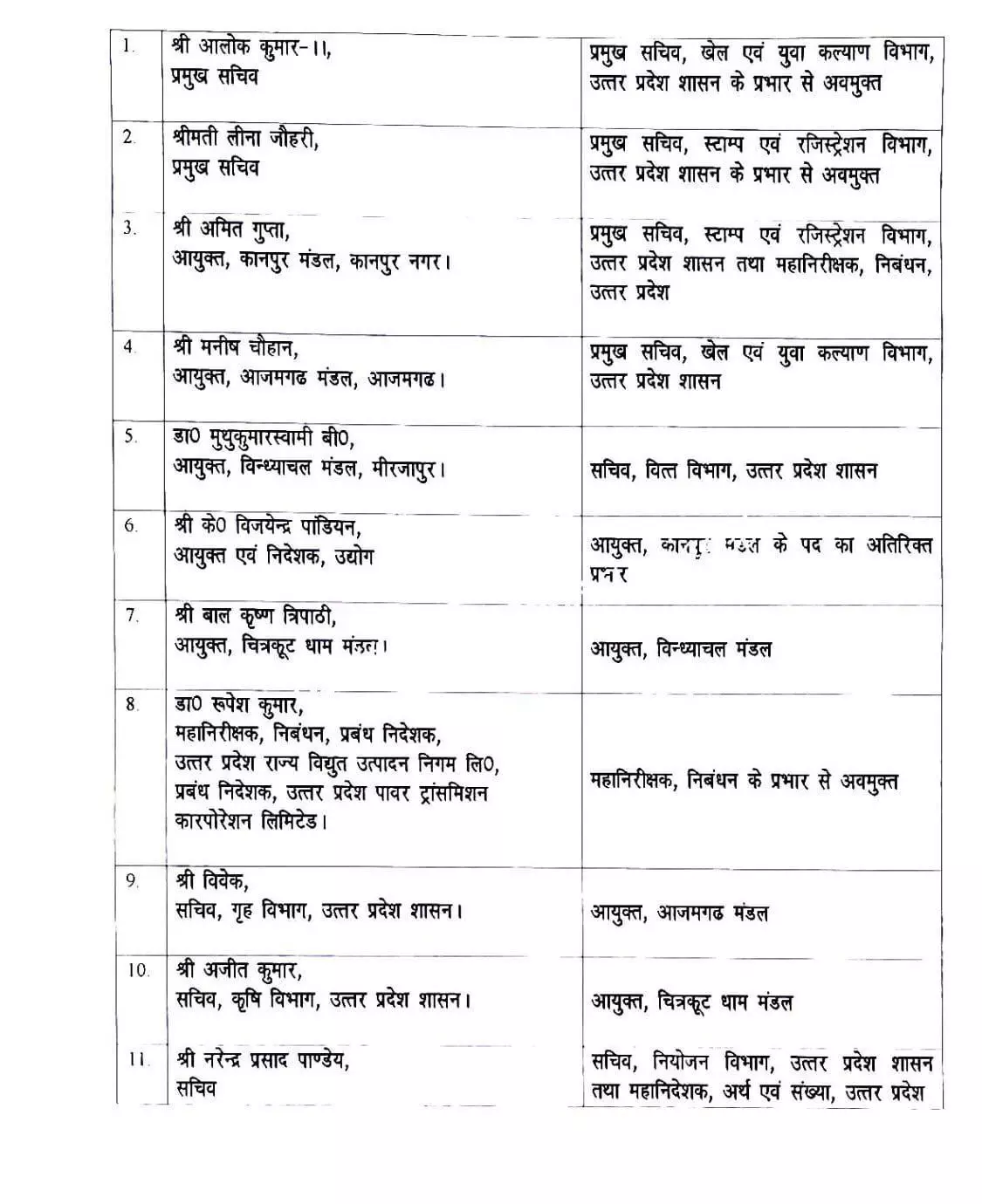 |UP IAS Transfer : उत्तरप्रदेश में 11 IAS अफसरों के तबादले किए गए हैं। अशोक कुमार प्रमुख सचिव खेल एवं युवा कल्याण विभाग उत्तर प्रदेश शासन के प्रभार से अव मुक्त किये गये हैं। इसके अलावा लीना ज़ौहरी प्रमुख सचिव स्टॉम्प एवं रजिस्ट्रेशन विभाग उत्तर प्रदेश शासन के प्रभार से अब मुक्त की गई हैं।