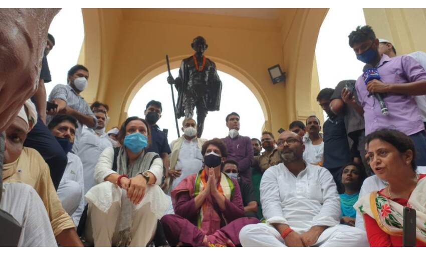 प्रियंका गांधी वाड्रा तीन दिवसीय दौरे पर लखनऊ पहुंची, दिया धरना