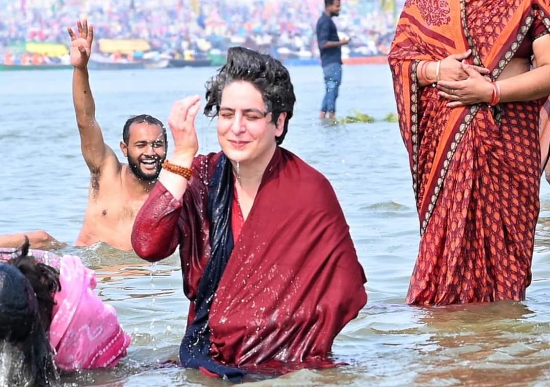 उप्र विधानसभा चुनाव से पूर्व तीर्थराज प्रयाग पहुंचीं प्रियंका वाड्रा, भगवामय होने का प्रयास