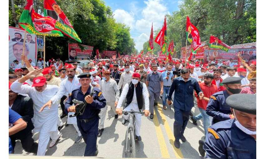 लखनऊ में समाजवादी पार्टी के राष्ट्रीय अध्यक्ष और पूर्व सीएम अखिलेश यादव के नेतृत्व में साइकिल यात्रा निकली। इस यात्रा ने पार्टी कार्यालय विक्रमादित्य मार्ग से शुरू होकर लारेटो चौराहा, कालीदास चौराहा, जियामऊ, 1090 चौराहा, जयप्रकाश नारायण अन्तर्राष्ट्रीय केन्द्र, सिरोज कैफे, सीएमएस चौराहा, दयाल चौराहा होते हुए साढ़े छह किलोमीटर की दूरी तय की।