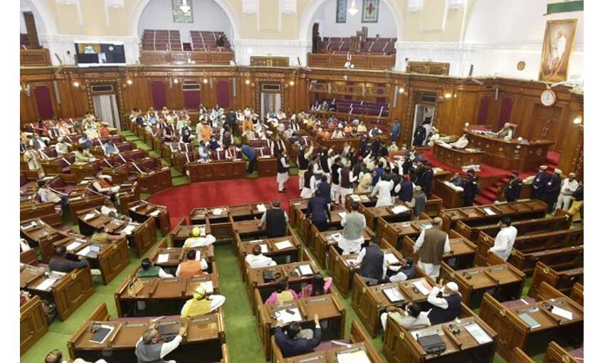|लखनऊ। प्रदेश में विधानमंडल के बजट सत्र का आज दूसरा दिन है। विपक्ष के हंगामे के बीच कल गुरूवार को शुरू हुए सत्र के दूसरे दिन विरोध जारी रहा। विपक्ष ने आज एक बार फिर किसानों के मुद्दों पर सरकार को घेरने की कोशिश की। नेता प्रतिपक्ष राम गोविन्द चौधरी ने प्रदर्शन के दौरान मृत किसानों को शहीद का दर्जा देने की मांग की। वहीं संसदीय कार्य मंत्री सुरेश खन्ना विपक्ष पर किसानों के बीच भ्रम पैदा का आरोप लगाया।