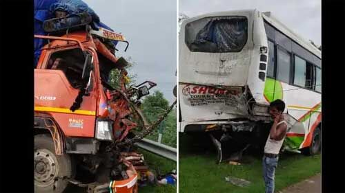 हादसा: यमुना एक्सप्रेस वे पर तेज रफ्तार कैंटर ने खड़ी बस को मारी टक्कर