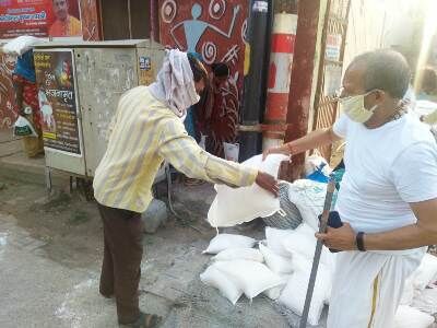 यहाँ संत एवं महात्माओं द्वारा गरीब एवं जरुरत मंदों को प्रतिदिन राशन वितरण किया जा रहा है। आज रमणरेती क्षेत्र परिक्रमा मार्ग आश्रम में संत जगद्गुरु पीपाद्वाराचार्य पीठाधीपति बलराम देवाचार्य ने आश्रम के बाहर गरीब व बेसहारा लोगों को आटा और चावल के पैकेट वितरण किए। संतों द्वारा बांटे जा रहें राशन को पाकर जरुरत मंदों के चेहरों पर मुस्कान आ गई।