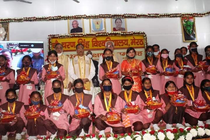 बताते चलें चौधरी चरण सिंह विश्वविद्यालय के दीक्षांत समारोह में 252 मेधावी छात्र-छात्राओं को मेडल और 217 को विशिष्ट योग्यता प्रमाण पत्र वितरित करने के लिए प्रदेश के डिप्टी सीएम दिनेश शर्मा मेरठ पहुंचे थे। चौधरी चरण सिंह विश्वविद्यालय के नेताजी सुभाष चंद्र बोस ऑडिटोरियम में आयोजित दीक्षांत समारोह में डिप्टी सीएम दिनेश शर्मा ने छात्र-छात्राओं को सम्मानित किया। इस दौरान अतिथि के रूप में गुजरात विश्वविद्यालय के पूर्व वीसी एएन पटेल भी मौजूद रहे। चौधरी चरण सिंह विश्वविद्यालय के कुलपति एनके तनेजा ने सभी अतिथियों का स्वागत किया। वहीं प्रदेश की राज्यपाल आनंदीबेन पटेल ने वीडियो कॉन्फ्रेसिंग के जरिए छात्र-छात्राओं को ऑनलाइन दीक्षा दी। जिसके लिए विश्वविद्यालय के ऑडिटोरियम में एक बड़ी स्क्रीन लगाई गई थी। कार्यक्रम के बाद मीडिया से बातचीत करते हुए डिप्टी सीएम दिनेश शर्मा ने कहा कि आज के कार्यक्रम में छात्राओं की ज्यादा भागीदारी देख उन्हें काफी खुशी मिली। उन्होंने दावा किया कि पूरे प्रदेश में जल्द ही कई सरकारी और निजी विश्वविद्यालय खोले जाएंगे। इसी के साथ उच्च शिक्षा और माध्यमिक शिक्षा की नीतियों में आमूलचूल परिवर्तन किए जाएंगे। आने वाली बोर्ड परीक्षाओं को लेकर डिप्टी सीएम ने नकल विहीन परीक्षा का दावा किया। उन्होंने बताया कि कोरोना काल के चलते इस बार बोर्ड की परीक्षाओं में 30 प्रतिशत कोर्स कम किया जाएगा। उन्होंने बताया कि शिक्षा के क्षेत्र में बदलाव के लिए विभिन्न कोर्स के पाठ्यक्रम में संशोधन भी किया जा रहा है।