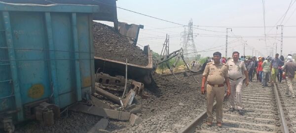 इटावा में कोयले से भरी मालगाड़ी हुई बेपटरी, रेल मार्ग बाधित