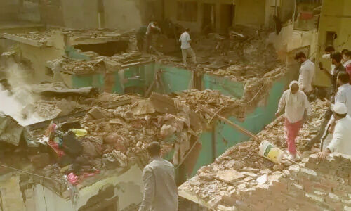 उप्र : अवैध पटाखा फैक्ट्री में हुआ धमाका, दो मंजिला मकान ढहा, दो की मौत