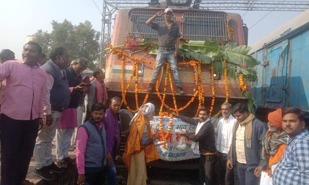 प्रथम ट्रेन झांसी-इलाहाबाद ट्रेन का पूजन कर किया स्वागत