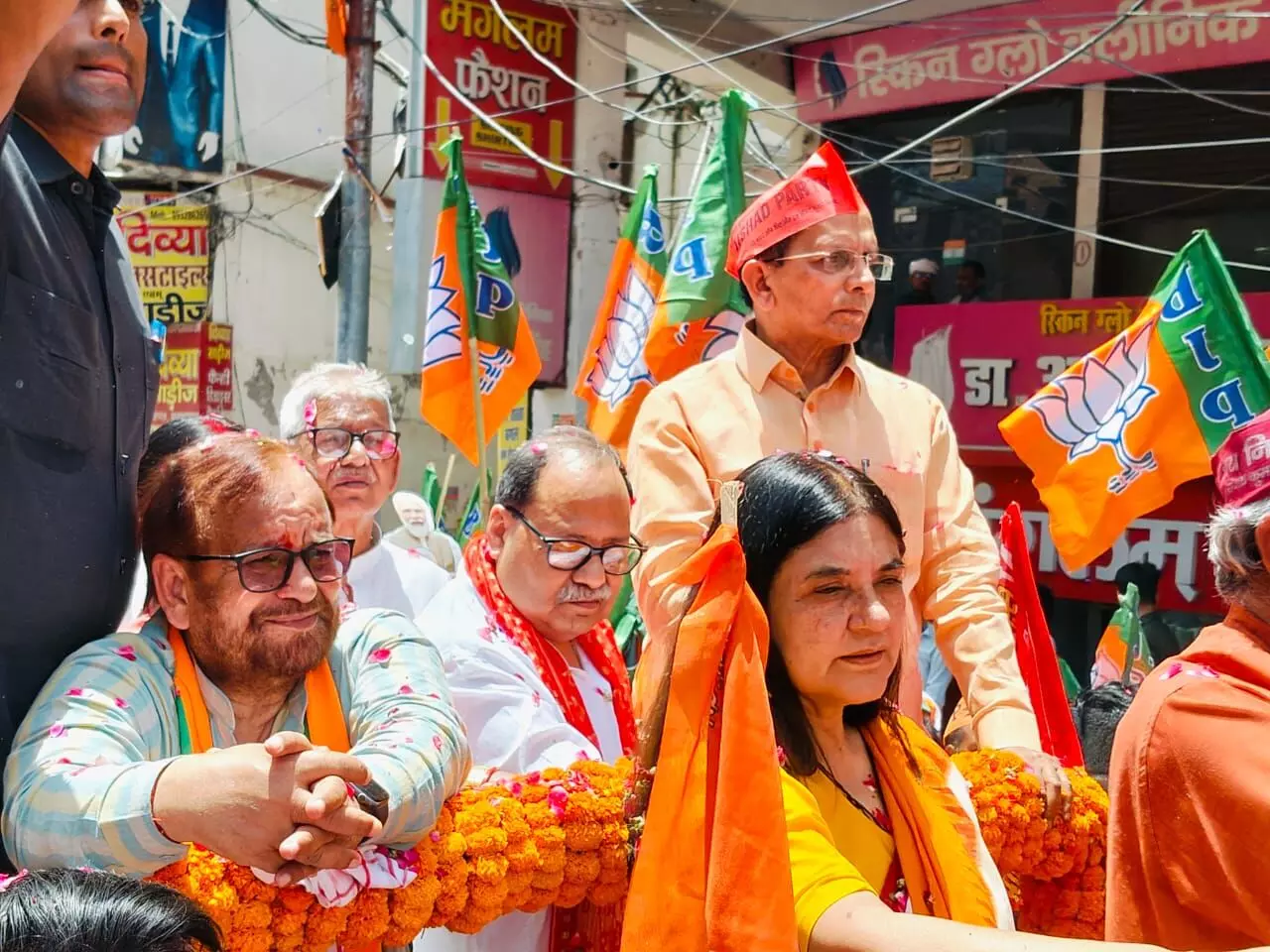 |सुल्तानपुर। भाजपा उम्मीदवार मेनका संजय गांधी बुधवार को जिला निर्वाचन अधिकारी के सामने अपना नामांकन पत्र दाखिल किया। नामांकन से पूर्व प्रभारी मंत्री आशीष पटेल व संजय निषाद, भाजपा जिलाध्यक्ष डॉ. आर ए वर्मा, रेखा निषाद आदि के साथ नामांकन जुलूस निकला। नौवीं बार ऐतिहासिक जीत दर्ज करने के लिए भाजपा के पदाधिकारीयों एवं समर्थकों ने जोर दार स्वागत किया।