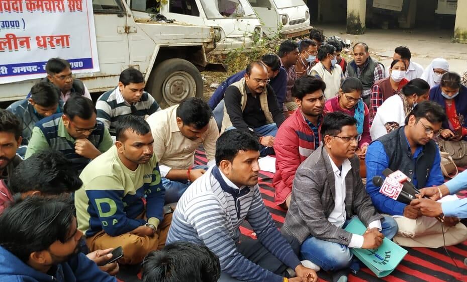 NHM संविदा कर्मियों ने 7 सूत्रीय मांगों को लेकर शुरू की हड़ताल
