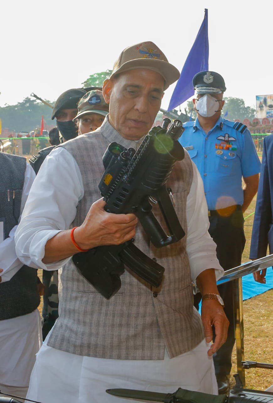 रक्षा मंत्री बुधवार को झांसी में 'राष्ट्र रक्षा समर्पण पर्व' के उद्घाटन समारोह को संबोधित कर रहे थे। कार्यक्रम का समापन 19 नवम्बर को होगा, जिसमें प्रधानमंत्री कई योजनाओं का शुभारंभ करने के साथ ही कई हथियार राष्ट्र को समर्पित करेंगे। इसमें प्रमुख रूप से स्वदेश निर्मित लाइट कॉम्बैट हेलीकॉप्टर (एलसीएच) है, जिसे प्रतीक के रूप में वायु सेना प्रमुख एयर चीफ मार्शल वीआर चौधरी को सौंपेंगे। इसके अलावा थल सेना प्रमुख जनरल एमएम नरवणे को ड्रोन/यूएवी और नौसेना के युद्धपोतों के लिए विकसित किये गए उन्नत ईडब्ल्यू सूट भी सौंपेंगे। यह आयोजन रानी लक्ष्मीबाई के जन्मदिन पर उत्तर प्रदेश सरकार के साथ मिलकर 'आजादी का अमृत महोत्सव' के हिस्से के रूप में मनाया जा रहा है।