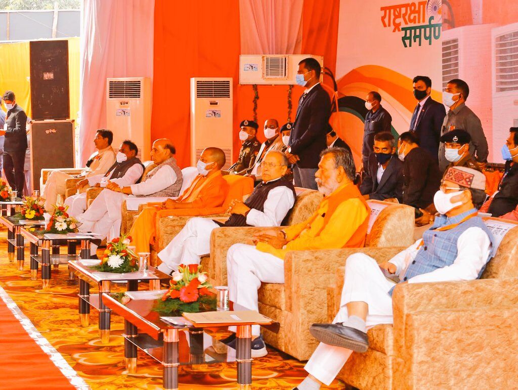 उत्तर प्रदेश सरकार की तारीफ करते हुए कहा कि जब देश भर में कहीं भी कानून व्यवस्था को बरकरार रखने और माफ़िया राज़ पर लगाम कसने की बात सामने आती है तो उत्तर प्रदेश का नाम अपने आप सबसे आगे आ जाता है। योगीजी के शासन में गुंडे माफिया या तो बदमाशी छोड़ चुके हैं या फिर उन्हें अपने धंधे छोड़ने पर मज़बूर होना पड़ा है। अभी कल ही प्रधानमंत्री नरेंद्र मोदी ने उत्तर प्रदेश में पूर्वांचल एक्सप्रेस-वे का उद्घाटन किया है। बुंदेलखंड को भी एक्सप्रेस-वे से जोड़ने का काम बड़ी तेज़ी से चल रहा है। इस देश के लिए हम क्या कर सकते हैं, हम सबको इस दिशा में सोचने की ज़रूरत है। रानी लक्ष्मीबाई ने अपने जीवन में इस पर विचार किया और एक बड़ी विदेशी ताक़त का डट कर मुक़ाबला किया। हर चुनौती के ख़िलाफ़ डट कर खड़े रहना हमारे राष्ट्र रक्षा के संकल्प का हिस्सा है।