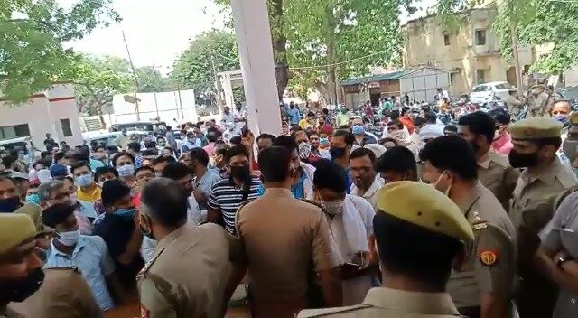 आजमगढ़: लगातार दबंगई के जरिए जनता पर धौंस जमाने का प्रयास कर रहे एसडीएम सदर गौरव कुमार ने मंगलवार को हद पार कर दी। पुलिस बल के साथ दुकान पर कारोना गाइडलाइन के पालन की जांच करने पहुंचे एसडीएम ने एक कारोबारी को सड़क पर घसीटकर मारा। इसके जानकारी होने पर शहर के कारोबारी आक्रोशित हो उठे और हजारों की संख्या में शहर कोतवाली को घेर लिया। कोतवाली में कारोबारी एसडीएम के खिलाफ नारेबाजी कर रहे है। पुलिस अधिकारी एसडीएम के बचाव में जुटे है लेकिन कारोबारी कार्रवाई की जिद पर अड़े हुए है। अभी हाल में एसडीएम ने बिना किसी नोटिस के दुकानदारों के छप्पर आदि भी तोड़वा दिया था।