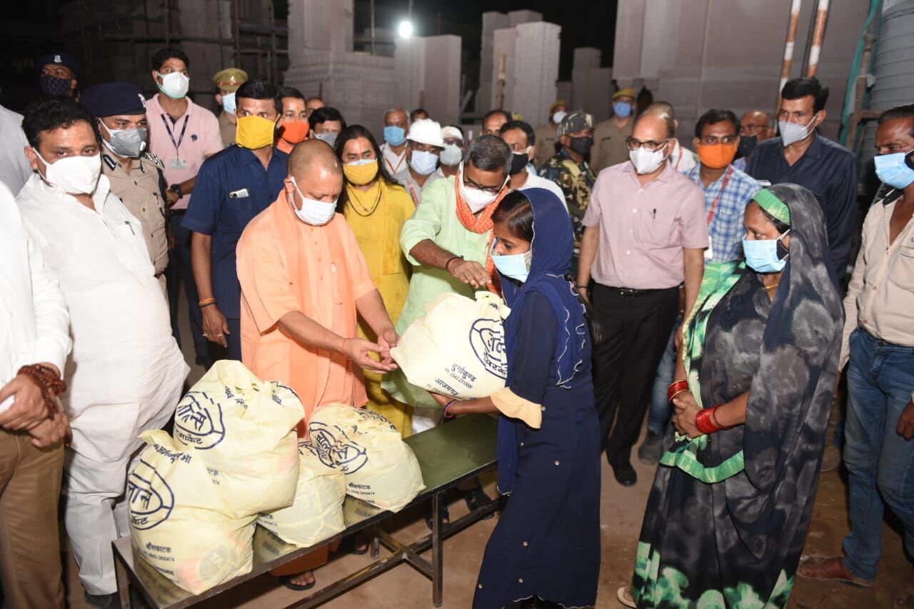 जानकारी लेने के पश्चात मुख्यमंत्री मंदिर चौक परिसर गए जहा गरीबों निषाद परिवारों को सूखा राहत का सामग्री वितरित किया। गरीब निषाद परिवारों को मंदिर प्रशासन की ओर से कोरोना कर्फ्यू के दौरान राहत सामग्री उपलब्ध कराने की व्यवस्था की गई है। जिसका मुख्यमंत्री ने प्रतीकात्मक वितरण किया।
