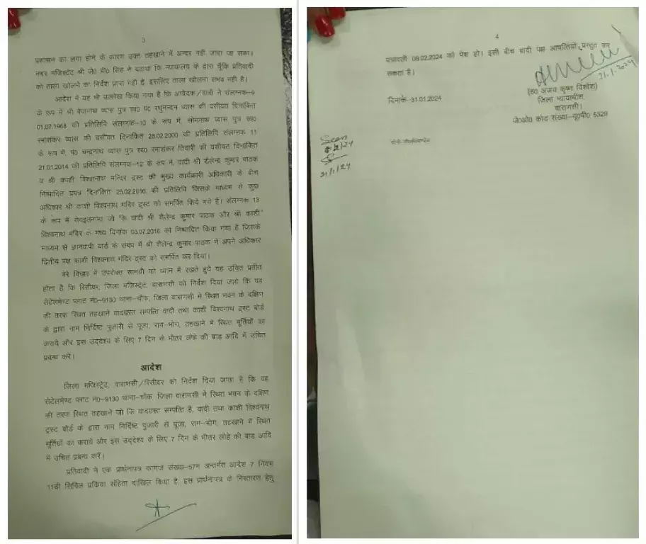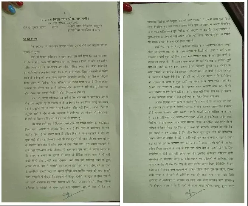 अदालत के 17 जनवरी के आदेश के बाद डीएम ने 24 जनवरी को तहखाने को अपने अधिकार में ले लिया था। इस पर प्रतिवादी पक्ष अंजुमन इंतजामिया ने आपत्ति जताते हुए तर्क दिया था कि 17 जनवरी के आदेश में अदालत ने केवल रिसीवर नियुक्त करने का जिक्र किया है। उसमें पूजा अधिकार का कोई जिक्र नहीं है। इसलिए वाद को निस्तारित मानते हुए खारिज किया जाए। कोर्ट ने दोनों पक्षों की दलीलें सुनने के बाद अपना आदेश सुरक्षित रख लिया था।
