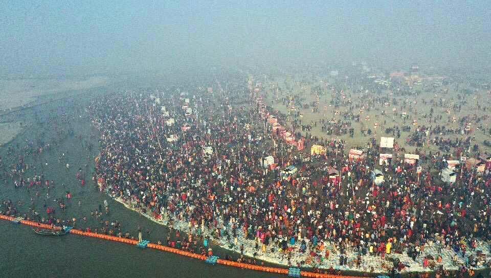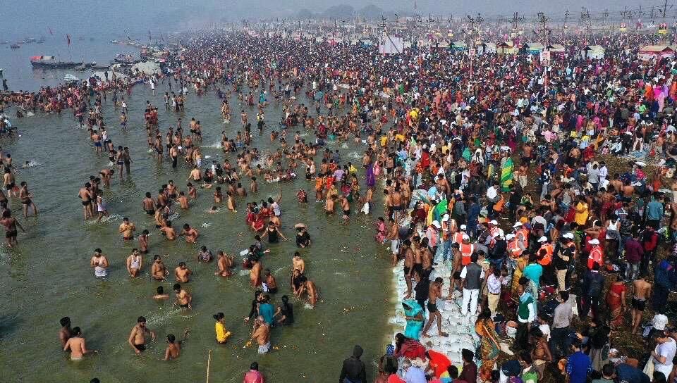तीर्थराज में मौनी अमावस्या के लिए संगम तट पर श्रद्धालुओं का सैलाब, हेलीकाप्टर से हुई पुष्प वर्षा