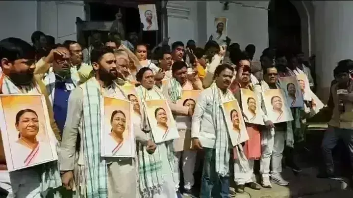 कोलकाता। राष्ट्रपति द्रौपदी मुर्मू को लेकर ममता कैबिनेट के मंत्री अखिल गिरी की आपत्तिजनक टिप्पणी के खिलाफ सोमवार को विधानसभा की कार्यवाही शुरू होते ही भाजपा सदस्यों ने जमकर नारेबाजी की। भाजपा विधायक सदन में इस मामले को लेकर मुल्तवी प्रस्ताव लाना चाहा, लेकिन अध्यक्ष विमान बनर्जी ने स्वीकार नहीं किया। इसके बाद भाजपा सदस्य वेल में उतर गए और राष्ट्रपति द्रौपदी मुर्मू की तस्वीर गले में लटका कर नारेबाजी करने लगे। भाजपा सदस्य अखिल गिरी को पद से हटाने और उनके खिलाफ कठोर कार्रवाई की मांग कर रहे थे। अध्यक्ष विमान बनर्जी ने कहा कि अखिल गिरी का मामला हाई कोर्ट में विचाराधीन है, इसलिए इस पर मुल्तवी प्रस्ताव लाने का कोई औचित्य नहीं है। नेता प्रतिपक्ष शुभेंदु अधिकारी के नेतृत्व में भाजपा सदस्यों ने नारेबाजी की और विधानसभा से वाकआउट किया है।