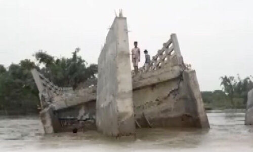 Kishanganj: A bridge in Goabari village washed away ahead of its inauguration following a rise in the water level of Kankai river. #Bihar (17.9) pic.twitter.com/oZnzhy5fcv