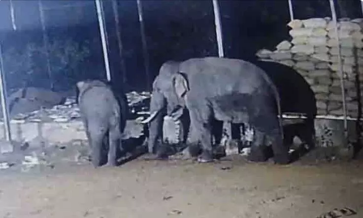 जिले में पिछले दो रातों से हाथी धान खरीदी केंद्र में पहुंचकर धान की बोरियों को नुकसान पहुंचा रहे हैं। इस घटना का सीसीटीवी फुटेज भी सामने आया है, जिसमें हाथी धान को नुकसान पहुंचाते हुए साफ दिखाई दे रहे हैं।