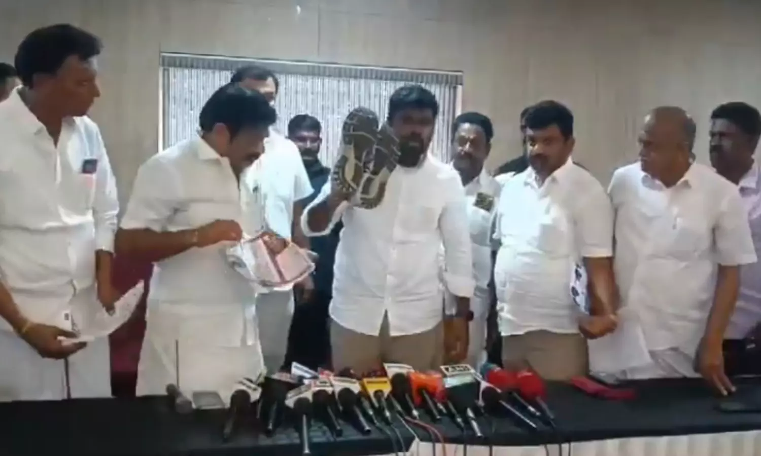 तमिलनाडु भाजपा अध्यक्ष के अन्नामलाई ने अपना जूता उतारकर कहा, "कल से लेकर जब तक डीएमके सत्ता से बाहर नहीं हो जाती, मैं कोई जूता नहीं पहनूंगा।" के अन्नामलाई अन्ना विश्वविद्यालय की छात्रा के यौन उत्पीड़न मामले को लेकर सरकार द्वारा किए गए व्यवहार के खिलाफ प्रदर्शन करेंगे।