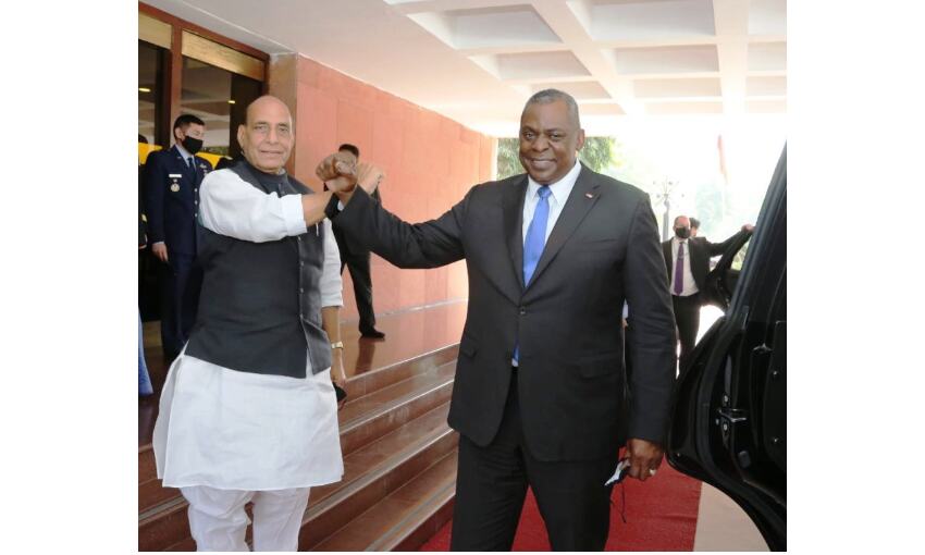 नईदिल्ली। भारत यात्रा पर अमेरिकी रक्षा मंत्री लॉयड जे. ऑस्टिन ने विज्ञान भवन में सुबह रक्षा मंत्री राजनाथ सिंह से मुलाकात की। इस दौरान आमने-सामने की बातचीत में राजनाथ सिंह ने ऑस्टिन को भरोसा दिलाया कि उनकी भारत यात्रा निश्चित रूप से भारत और अमेरिका के बीच सहयोग और साझेदारी को और सुदृढ़ करने वाली है।