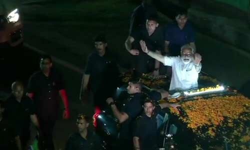 रांची। झारखंड की राजधानी रांची में मंगलवार शाम रोड शो के दौरान काले रंग की खुली रेंज रोवर गाड़ी में सफेद कुर्ते में जैसे ही प्रधानमंत्री नरेंद्र मोदी बाहर निकले पूरा वातारवरण मोदी-मोदी के नारों से गुंजायमान हो गया। अपनी गाड़ी के रूफ टॉप से मोदी आधा शरीर निकाले लोगों का अभिनंदन हाथ हिलाकर स्वीकर रहे थे तो दूसरी तरफ लोगों की अभूतपूर्व भीड़ उनकी एक झलक पाने को बेताब थी। रोड शो के दौरान उमड़ी भीड़ यह साफ बता रही थी कि मोदी का जादू कायम है। भीड़ के दौरान अयूब नाम का एक व्यक्ति ने हिन्दुस्थान समाचार को बताया कि मैं मोदी का फैन हूं। इसलिए उनके समर्थन में आया हूं।