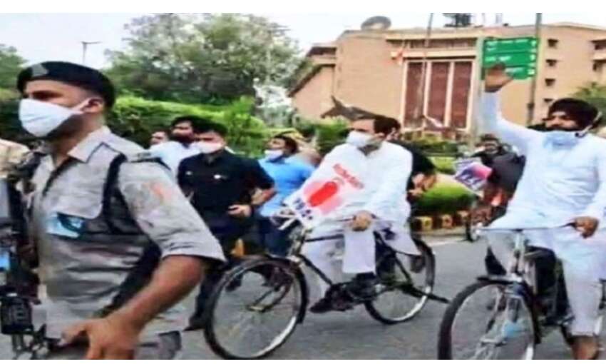 पिछले सप्ताह कांग्रेस नेता राहुल गांधी ट्रैक्टर के जरिए संसद पहुंचे थे। आज वह पेट्रोल, डीजल और रसोई गैस की बढ़ती कीमतों को लेकर विरोध दर्ज कराने के लिए साइकिल से संसद पहुंचे। इस दौरान उनके साथ कई विपक्षी नेता भी शामिल थे। विपक्षी पार्टियों के नेताओं के साथ बैठक में कांग्रेस नेता राहुल गांधी ने कहा कि आज की आवश्यकता विपक्ष के एकजुट होने की है। लोगों की यह आवाज जितना ज्यादा संगठित होगी, उतना ही ज्यादा भारतीय जनता पार्टी की सरकार को इसे दबाना मुश्किल होगा।