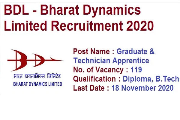 बीडीएल में स्नातक व इंजीनियरिंग पास के लिए 119 पदों पर भर्तियां, देखें डिटेल्स