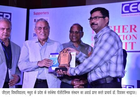 प्राचार्य डाॅ. दिवाकर भारद्वाज ने यह अवार्ड राष्ट्रीय एक्रिडेशन बोर्ड के चेयरमैन प्रो. केके अग्रवाल से प्राप्त किया। हम आपको बता दें कि सेंटर फाॅर एजुकेशन ग्रोथ एण्ड रिसर्च (सीईजीआर) एक राष्ट्रीय स्तर की संस्था है, जो प्रतिवर्ष देश भर में स्थित उच्च शिक्षा संस्थानों का मूल्यांकन कर उनकी रैकिंग करती है। इसी संस्था के द्वारा वर्ष 2017 में भी जीएलए पाॅलीटेक्निक को प्रदेश के सर्वश्रेष्ठ संस्थान के खिताब से नवाजा गया था।