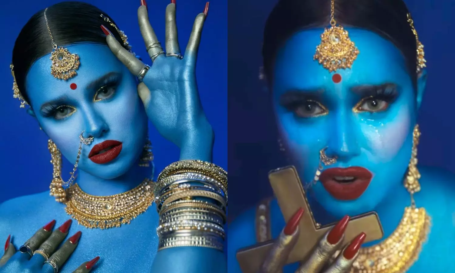 इसके अलावा उन्होंने अपने शरीर को नीला रंग दिया है। उनके इस लुक और वीडियो को लेकर सोशल मीडिया पर लोगों में भारी गुस्सा देखने को मिल रहा है।