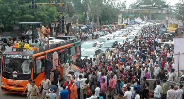 हाथ जोड़कर शिवराज ने मांगा जीत का आशीर्वाद जन समूह ने भी हाथ उठाकर कहा, हम देंगे