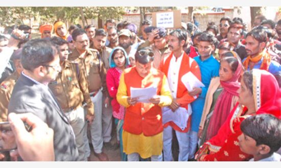 गुना। कैन्ट टीआई उमेश मिश्रा के खिलाफ गुरुवार को बजरंगदल लामबंद हो गया। इस दौरान एक वाहन रैली निकालकर एसपी निमिष अग्रवाल को ज्ञापन सौपा गया। मामला भाजयुमो कार्यकर्ता नीतेश तिवारी एवं बजरंगदल कार्यकर्ता बंटी जाट की गिरफ्तारी से जुड़ा है। जिसमें टीआई पर तानाशाही का आरोप लगात हुए उनके निलंबन की मांग की गई है। ज्ञापन में बताया गया कि रशीद कॉलोनी निवासी विष्णु प्रताप शर्मा की शिकायत कैन्ट थाने में नहीं लिखी जा रही थी, इसकी सूचना मिलने पर नीतेश तिवारी और बंटी जाट गत दिवस कैन्ट थाने पहुँचे थे। यहां टीआई द्वारा शिकायत तो दर्ज की ही नहीं गई, उलटे दोनों कार्यकर्ताओं से अभद्रता की गई। साथ ही दोनों को गिरफ्तार भी कर लिया गया। इस दौरान टीआई के नशे में होने की बात भी ज्ञापन में कही गई है। ज्ञापन के मुताबिक दोनों कार्यकर्ताओं पर घटना और कायमी 1 जनवरी की बताई गई है, जबकि इस दिन कोई थाने गया ही नहीं था। इससे पहले विभिन्न मार्गो से रैली निकालकर भी बजरंगदल ने प्रदर्शन किया। कार्यकर्ता हाथ में टीआई का निलंबन, टीआई की तानाशाही नहीं चलेगी आदि नारे लिखी तख्तियां लिए हुए थे।