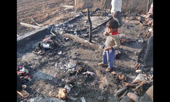 गुना। तिनका-तिनका जोडक़र अपने आशियाने सजाए थे, आशियाने भलें ही घास-फूस के थे, किन्तु उनके लिए वह किसी राजमहल से कम नहीं थे, अपने इसी राजमहल में उन्होने थोड़ी-थोड़ी कर गुजर-बसर लायक गृहस्थी भी जमा की थी। सिर पर छत और छोटी सी गृहस्थी लेकर वह अपनी आँखों में भविष्य के सुनहरे सपनें संजों रहे थे, किन्तु बीती रात सब आग की भेंट चढ़ गए। तिनका-तिनका जोड़क़र बनाए आशियानें, जमाई गृहस्थी सब उनकी आँखों के सामने ही राख के ढेर में तब्दील हो गए। इसी के साथ उनके सपनें भी स्वाहा हो गए। यह ह्दयविदारक घटना नानाखेड़ी क्षेत्र की है, जहां बीती रात हुई आगजनी में करीब सात घर जलकर राख हो गए। इसके चलते ठिठुरती ठंड में इनमें रहने वाले परिवार सडक़ पर आ गए। इस दौरान आंसुओं का सैलाब देखने को मिला। आग कैसे लगी? इसका स्पष्ट रुप से कुछ पता नहीं चल सका है, किन्तु पीडि़तों का कहना है कि बस्ती खाली कराने की मंशा से आग पेट्रोल डालकर साजिश के तहत लगाई गई है। अपने इसी आरोप के चलते पीडि़तों ने रात में सडक़ पर आकर चक्काजाम किया। इस दौरान उन्होने पथराव करते हुए वाहनों में भी तोडफ़ोड़ की।