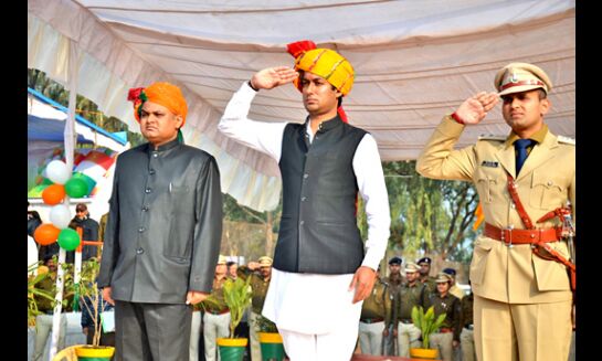 गुना। जिले में गणतंत्र दिवस की सालगिरह धूमधाम से हर्षोल्लास से मनाई गई। इस मौके पर जिले भर में कार्यक्रम आयोजित कर झंडारोहण किया गया। मुख्य समारोह लाल परेड मैदान पर आयोजित हुआ, जिसमे नगरीय प्रशासन मंत्री जवयर्धन सिंह ने झ्वजारोहण कर परेड की सलामी ली। इस मौके पर श्री सिंह ने प्रदेश के मुख्यमंत्री का जनता के नाम संदेश का वाचन किया। इसके साथ ही परेड का निरीक्षण कर उमंग एवं उत्साह के प्रतीक रंगीन गुब्बारे मुक्त आकाश में छोडे। समारोह में सशस्त्र बल द्वारा हर्ष फायर किया गया और विभिन्न विभागों द्वारा विकास को दर्शाती चलित झांकियां निकाली गईं। इस अवसर पर परेड कमाण्डर रक्षित निरीक्षक उपेन्द्र सिंह यादव के नेतृत्व में विशेष सशस्त्र बल, पुलिस, होमगार्ड, एनसीसी सीनियर एवं जूनियर डिवीजन, स्काउट गाईड, शौर्या दल की प्लाटूनों ने अनुशासित आकर्षक मार्च पास्ट किया। समारोह में पहली बार 162 छात्र-छात्राओं के कैडेट्स समूह समारोह में शामिल हुआ और मार्चपास्ट किया।