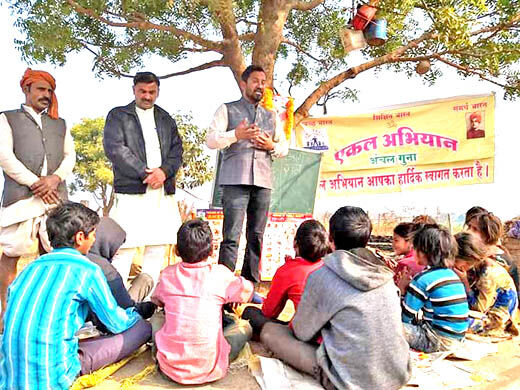 गुना। बच्चों के संस्कार और अपनी मातृ भाषा का सच्चा दर्शन गावों में ही देखने को मिलता हैं। एकल अभियान द्वारा सम्पूर्ण देश के ग्रामीण क्षेत्रों में पंचमुखी शिक्षा के द्वारा एकल विद्यालय संचालित हो रहे हैं। जो भारत के वनवासी एवं पिछड़े क्षेत्रों में सेवा कार्य कर गाँव ओर वन वन्धुओं के सम्पूर्ण विकास की चिंता कर रहे हैं। ।इस समय देश में 70000 से अधिक एकल विद्यालय चल रहे हैं। आगामी वर्ष में पूरे देश 1 लाख से अधिक विद्यालय खोलने का एकल ने लक्ष्य रखा हैं। श्री सोलंकी ने स्कूली छात्रों को संबोधित करते हुए कहे। एकल की वन यात्रा के दौरान ग्रामीण क्षेत्रों का दौरा करते हुए एकल विद्यायल समिति के सचिव महेश सोलंकी एवं वनयात्रा प्रभारी विकास जैन नखराली ने ग्राम गड़ा एवं बंजारीपुरा में पहुँच वनवन्धुओं के क्षेत्रों में चल रहे स्कूलों का निरिक्षण किया। श्री जैन ने कहा कि गुना अंचल में 270 विद्यालय संचालित हो रहे हैं। आगामी 2 माह के अंदर 60 विद्यालय बढ़ाने का लक्ष्य रखा गया हैं। गुना अंचल में 9 संच जो गुना,आरोन, बदरवास, ऊमरी, बमोरी ,फतेहगढ़, रुठियाई, बीनागंज, चाचौड़ा, राजगढ़ व खिलचीपुर संचालित हो रहे हैं। जहाँ पंचमुखी शिक्षा के माध्यम से 8 हजार एक सो छात्र व छात्राओं को 270 आचार्य द्वारा शिक्षा दी जा रही है। विद्यालय के बच्चों ने गीत एवं गिनती सुनाकर अपनी प्रतिभा का परिचय दिया।जिनको समिति ने कॉपी-पेन देकर पुरष्कृत किया। इस मौके पर अंचल अभियान प्रमुख पप्पू सिंह नायक, भाग व्यास धर्मदास भाग, कार्यालय प्रमुख गोपाल सिंह, संच प्रमुख मोहर सिंह, ग्राम प्रमुख मनोज कुशवाह, महिला समिति अध्यक्ष मालती कुशवाह, आचार्य सरिता कुशवाह व नीरज यादव उपस्थित रहे।