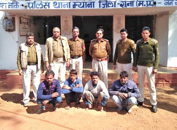 गुना। जिले के म्याना थानातंर्गत नकली नोटो के साथ शनिवार को चार आरोपियों को गिरफ्तार किया गया है। आरोपियों से 100 रुपए के चार नकली नोट भी बरामद किए गए है। पुलिस के अनुसार सोनू, लखन, मुंशी एवं नवल सिंह को पकड़ा गया है। इनके कब्जे से 100 रुपए के चार नकली नोट बरामद किए गए है। इन नोटों को एक शराब की दुकान पर चलाने का प्रयास किया गया था। जहां से सूचना मिलने के बाद पुलिस ने घेराबंदी कर आरोपियों को पकड़ा। आरोपियों का एक साथी फिलहाल फरार बताया जाता है, जिसकी तलाश जारी है। यह सभी आरोपी टकनेरा एवं सिंघारपुरा के है। पुलिस आरोपियों के साथियों के बारे में उनसे पूछताछ कर रही है, इसके साथ ही उनके पास नकली नोट कहां से आए? इसको लेकर भी जानकारी जुटा रही है।