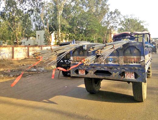 परिवहन हीं नहीं रहवासी क्षेत्रों में बिक भी रही है भवन निर्माण सामग्री